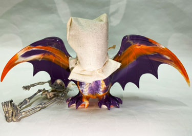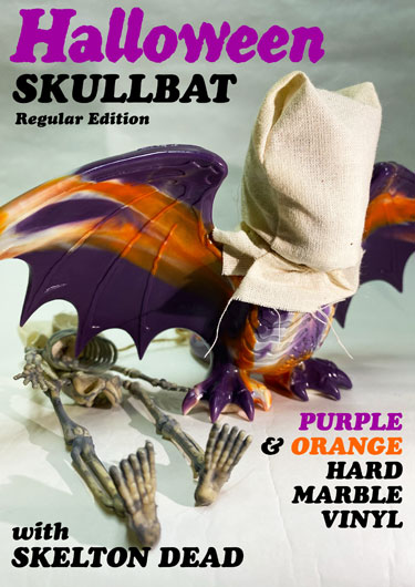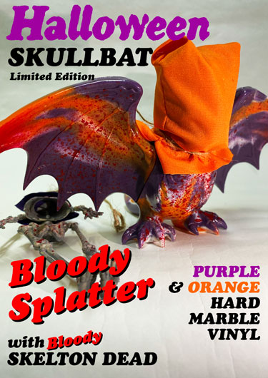 限定リミテッドエディションは、SKULLMAN & BATにはパンプキンオレンジの頭巾、そしてSKELTONはハロウィンパープルの頭巾をそれぞれ被り、SKULLMANとSKELTON本体には血飛沫が炸裂するスプラッターペイントが施された超豪華仕様で登場です!