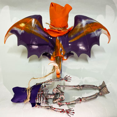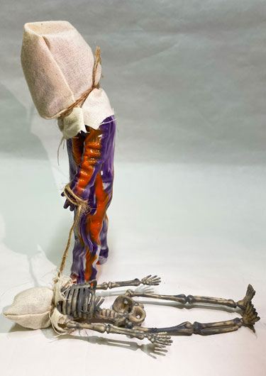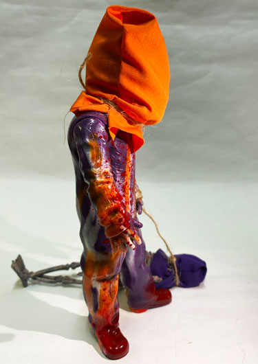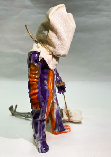 SKULLMAN頭部はブラインド頭巾を被り、骸骨人形『SKELTON』を麻紐でぶら下げているというHALLOWEEN HORRORの特別仕様となっております。