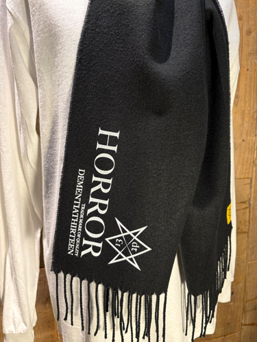 ブランド最大のテーマでありメッセージでもあるインパクト最大のワード『HORROR』デザインのマフラーが2色展開で登場。